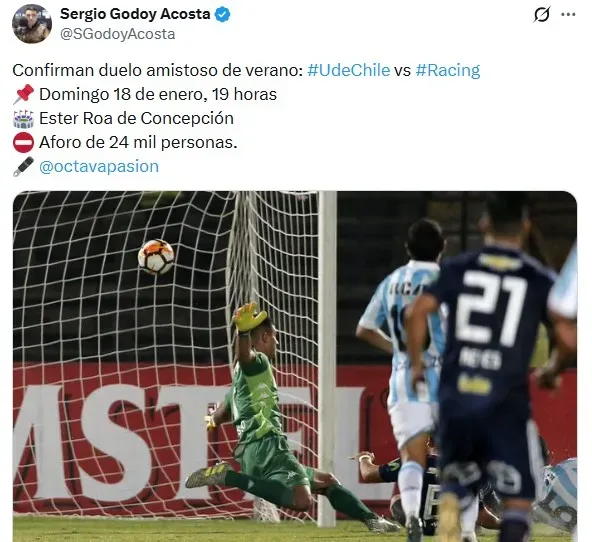 Al duelo ya confirmado ante Universitario de Perú en Lima, ahora se suma un nuevo choque internacional: Universidad de Chile enfrentará a Racing Club de Avellaneda.