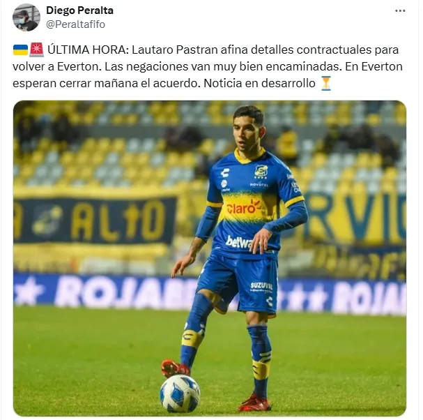 “Lautaro Pastrán afina detalles contractuales para volver a Everton. Las negaciones van muy bien encaminadas. En Everton esperan cerrar mañana el acuerdo”, detalló.