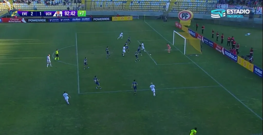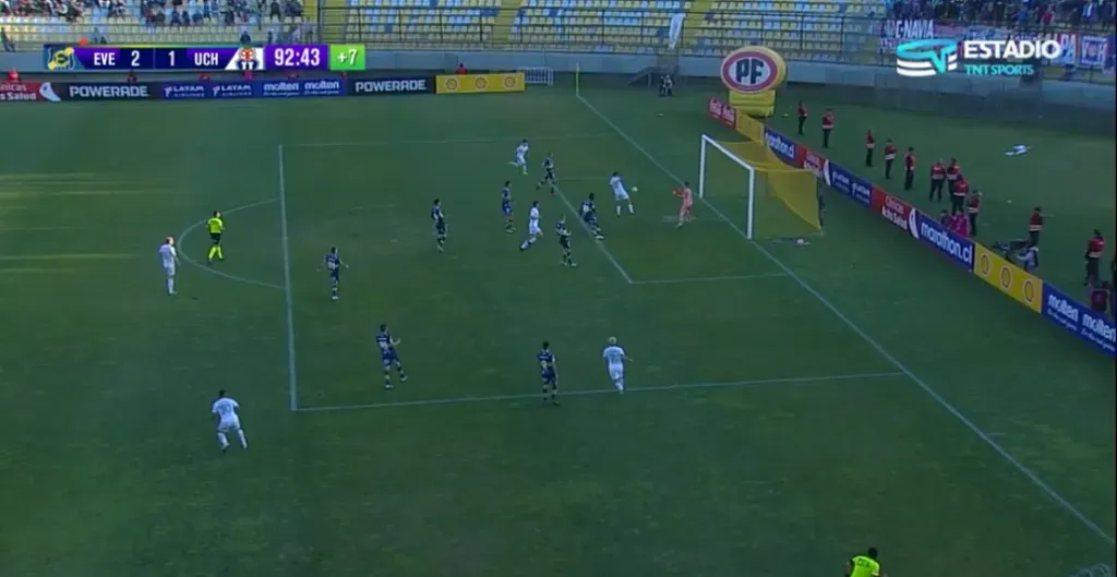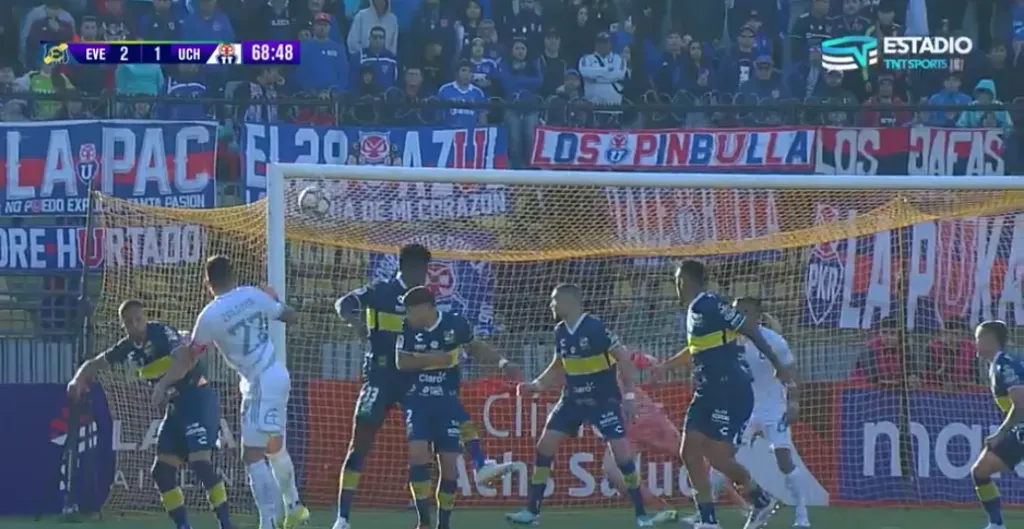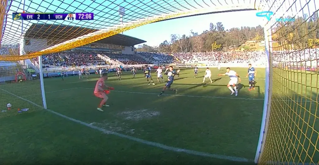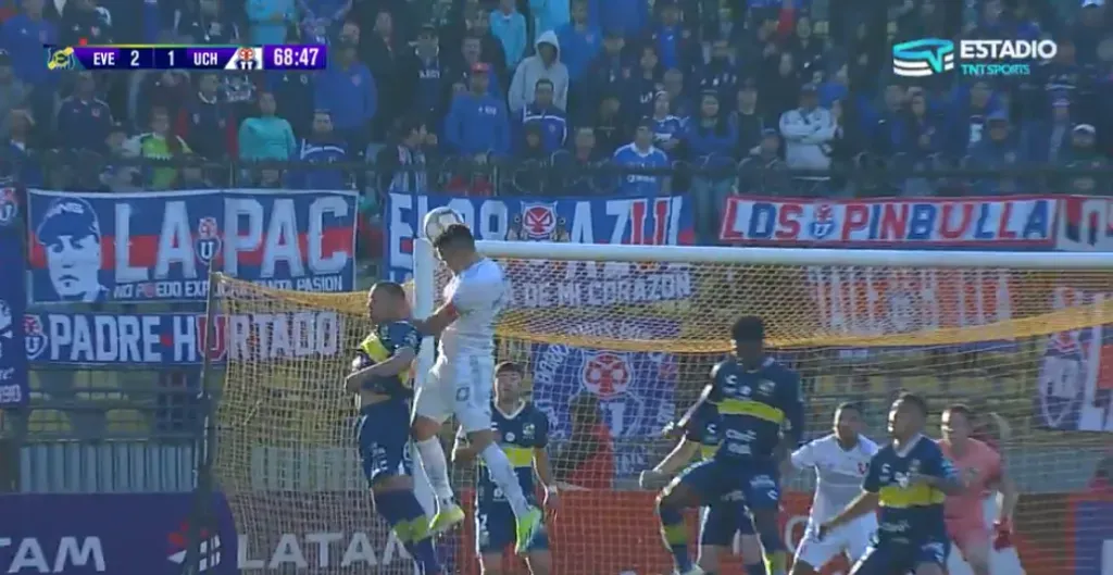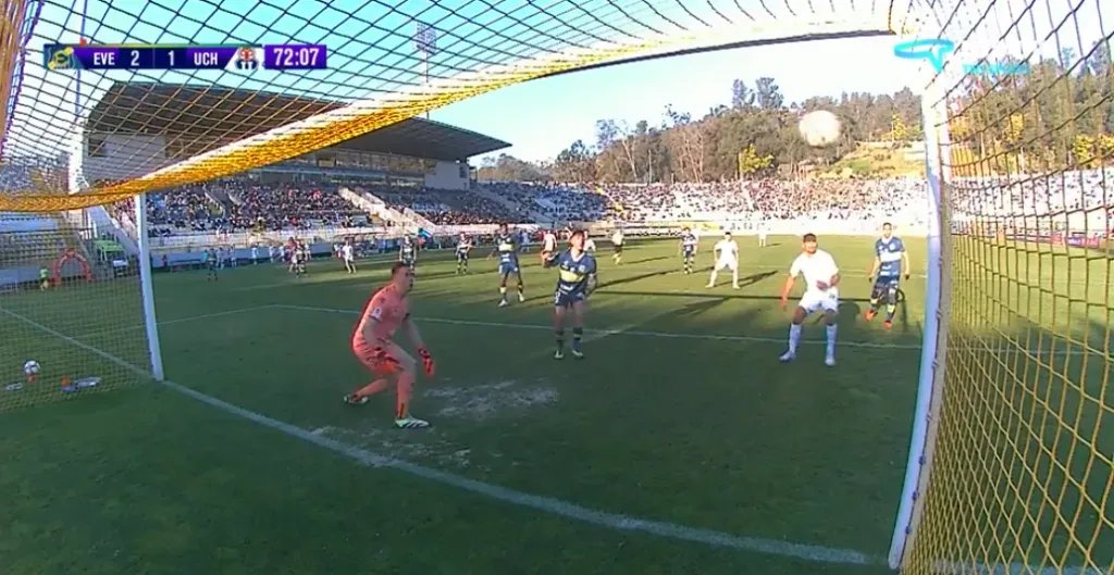 Descuento de la U: centro de Maxi Guerrero desde el córner que fue cabeceado por Matías Zaldivia. El central de la U tuvo un partido de mucho ímpetu y empuje y fue el que se peleó con la mitad de Everton, mientras éstos hacían tiempo.