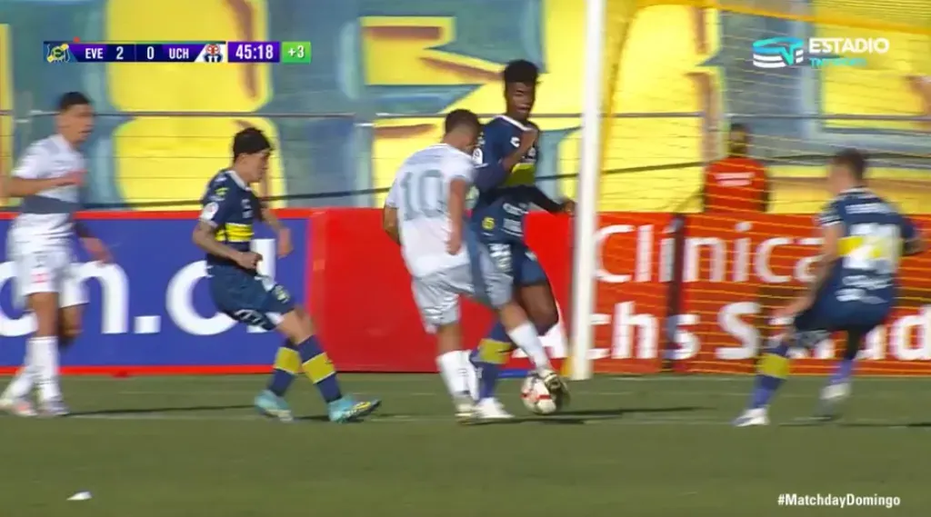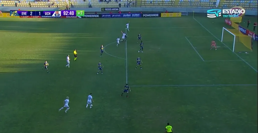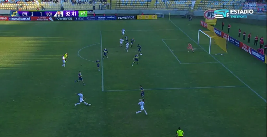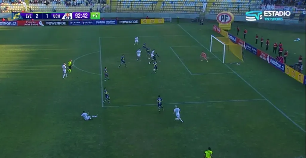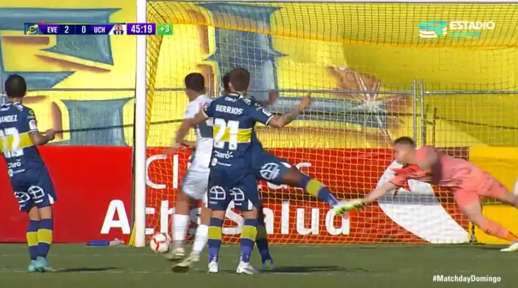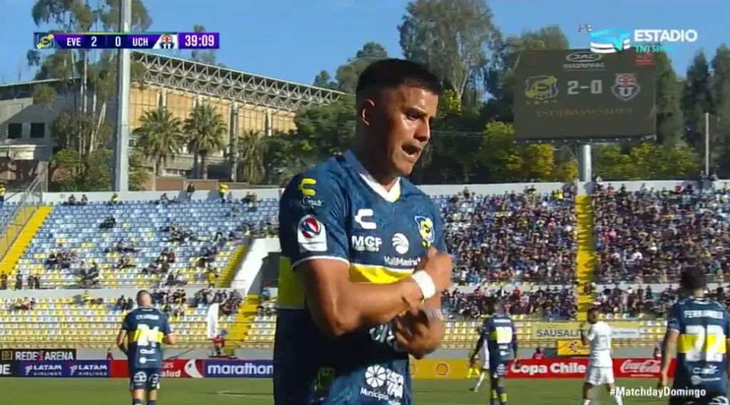 Descuento de la U: centro de Maxi Guerrero desde el córner que fue cabeceado por Matías Zaldivia. El central de la U tuvo un partido de mucho ímpetu y empuje y fue el que se peleó con la mitad de Everton, mientras éstos hacían tiempo.