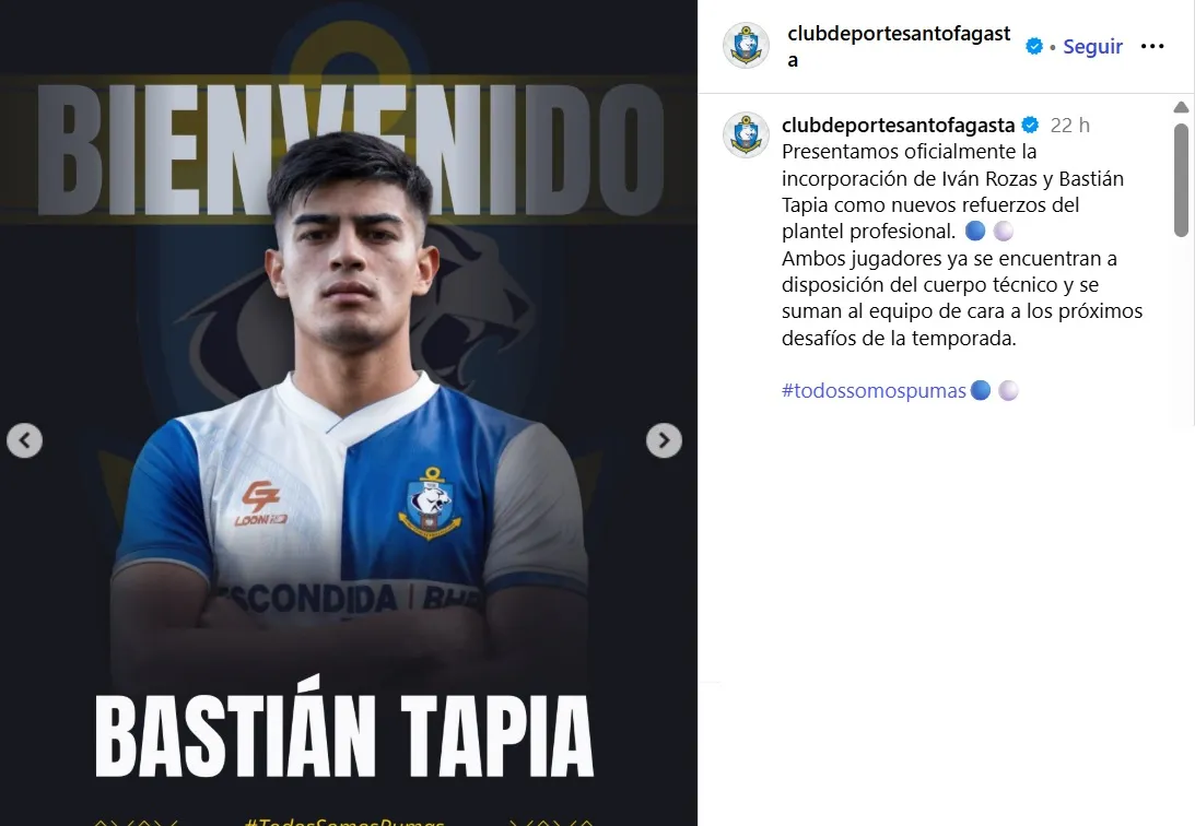 A través de sus redes sociales, el club anunció a sus nuevos jugadores. “Presentamos oficialmente la incorporación de Iván Rozas y Bastián Tapia como nuevos refuerzos del plantel profesional. Ambos jugadores ya se encuentran a disposición del cuerpo técnico y se suman al equipo de cara a los próximos desafíos de la temporada”.