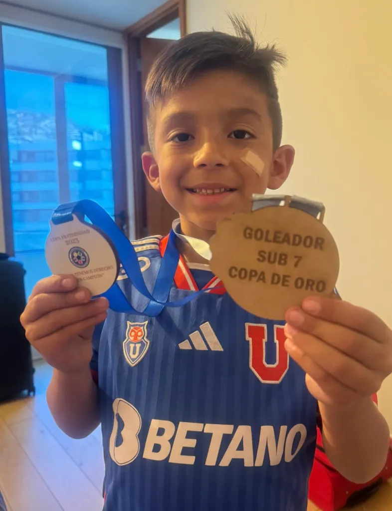 Pero la familia del argentino de igual forma hace celebrar a los azules, porque su pequeño hijo, Ramiro, se coronó campeón con una de las Escuela de Fútbol de Universidad de Chile.