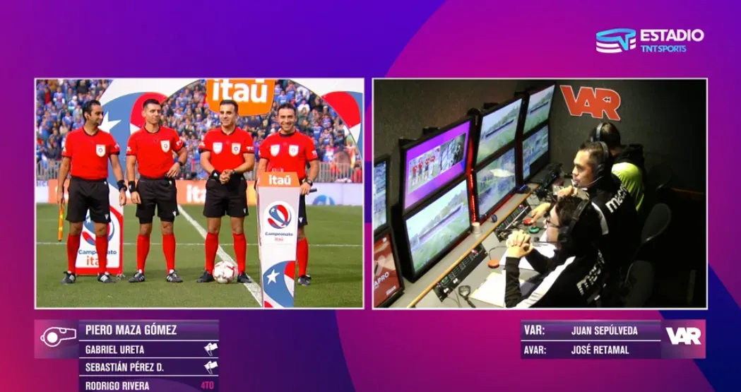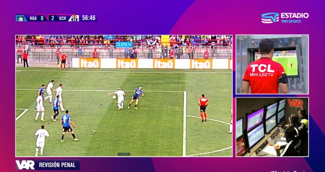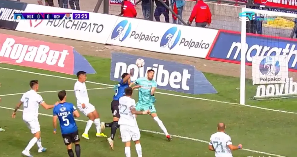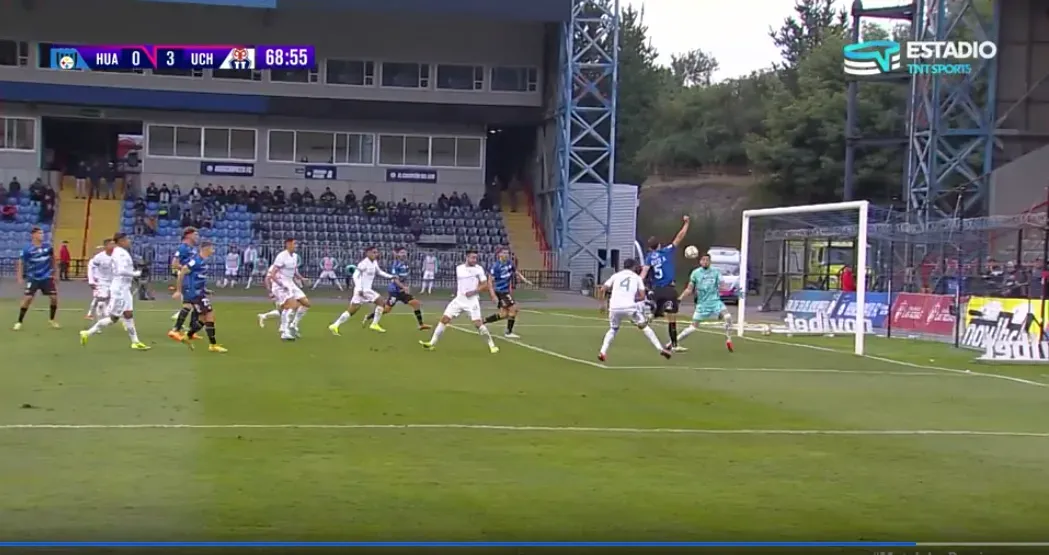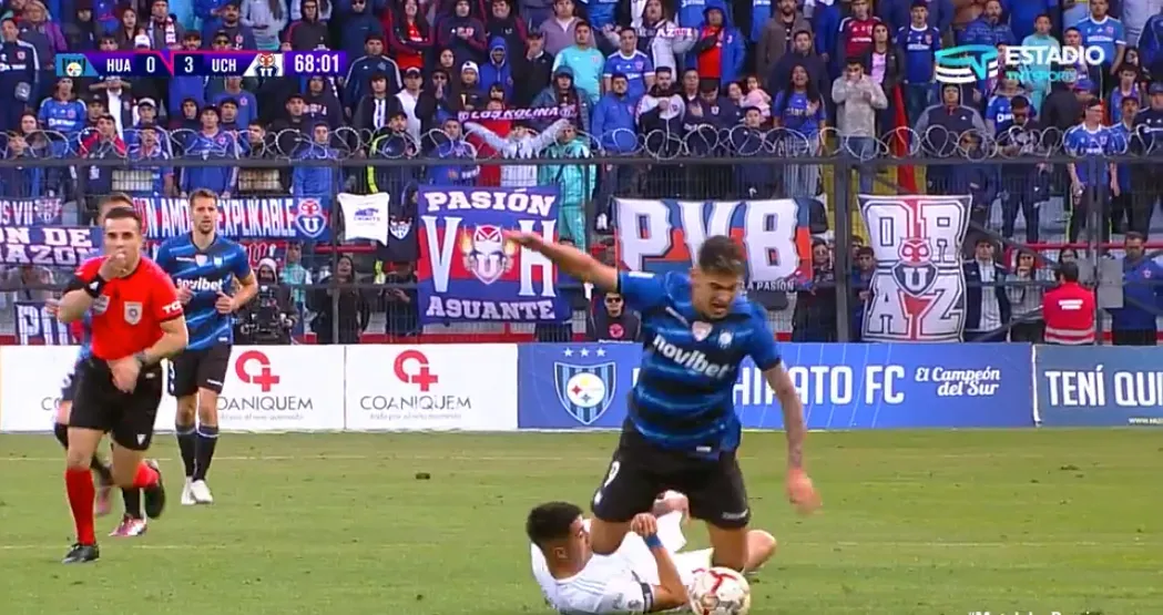 Una pelota fue despejada por Marcelo Díaz y rebotó rápidamente para darle en la mano. Los jugadores de Huachipato alegaron, pero no fue sino hasta el llamado del VAR que Piero Maza, el juez del encuentro, decidió ir a revisar la jugada. El balón daba claramente en la mano de Crepato, pero el árbitro desestimó el penal, ante el reclamo furioso de los choreros.