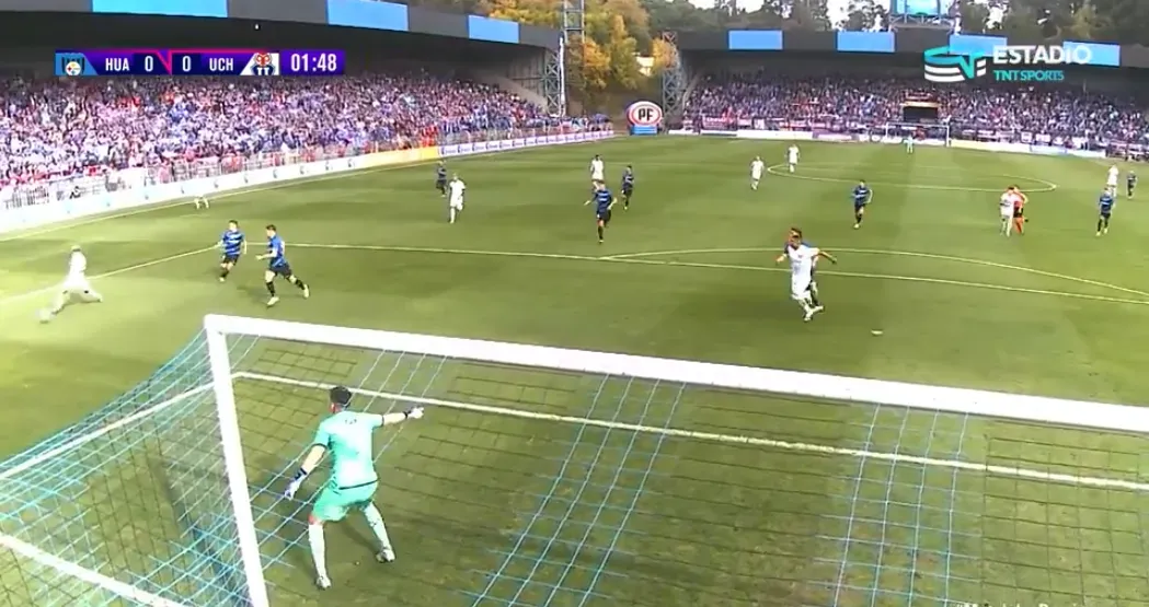 La U fue superior desde el primer minuto. Los dirigidos por Gustavo Álvarez comenzaron a poner un campamento en el área de los de la usina desde el primer minuto de juego. Huachipato, que conseguía a ratos romper con el asedio, parecía cada vez aguantar menos.