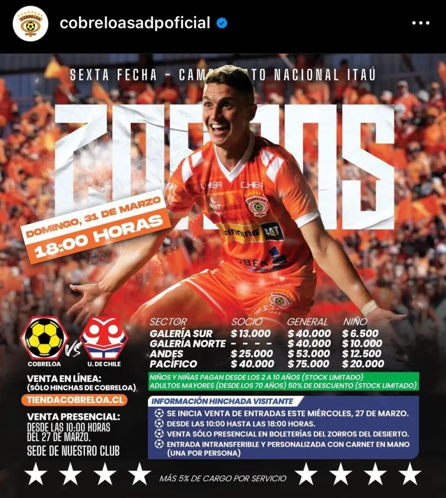 Los zorros se pusieron pillos y pusieron el precio de la galería general en $40.000, lo que fue considerado como una locura por los hinchas, para el duelo en la ciudad de Calama.