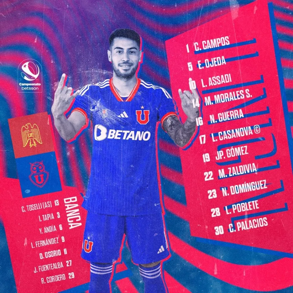 Con esto los azules formarán con Cristóbal Campos en portería; Matías Zaldivia, Nery Domínguez, Luis Casanova en defensa; Juan Pablo Gómez, Emmanuel Ojeda, Israel Poblete, Marcelo Morales, Lucas Assadi en los volantes; Cristián Palacios y Nicolás Guerra para el ataque.