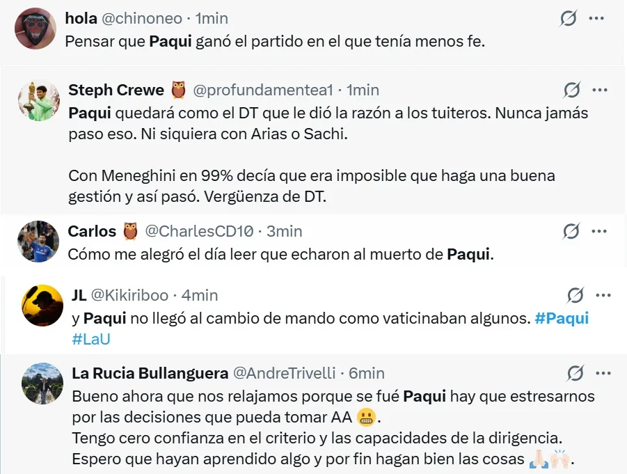 Ante esto, los hinchas rápidamente perdieron la paciencia y pedían la salida del técnico, buscando urgentemente un cambio de dirección. Por lo mismo, tras conocerse la noticia de su salida, los seguidores azules no tardaron en reaccionar en redes.
