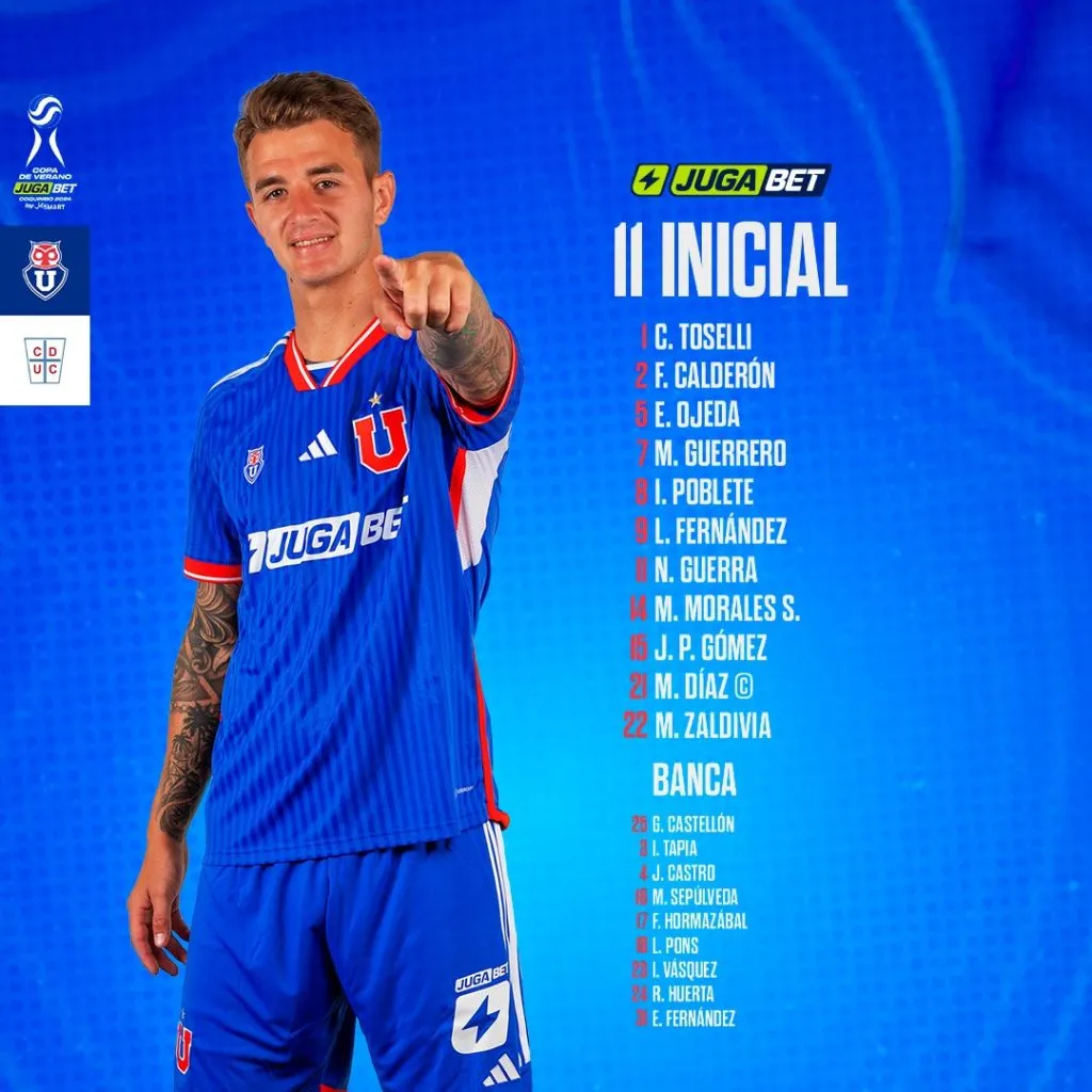 Con Marcelo Díaz desde el primer minuto, asumiendo el rol de capitán del equipo para la temporada 2024, los azules saltan a la cancha en su primer compromiso del torneo amistoso.