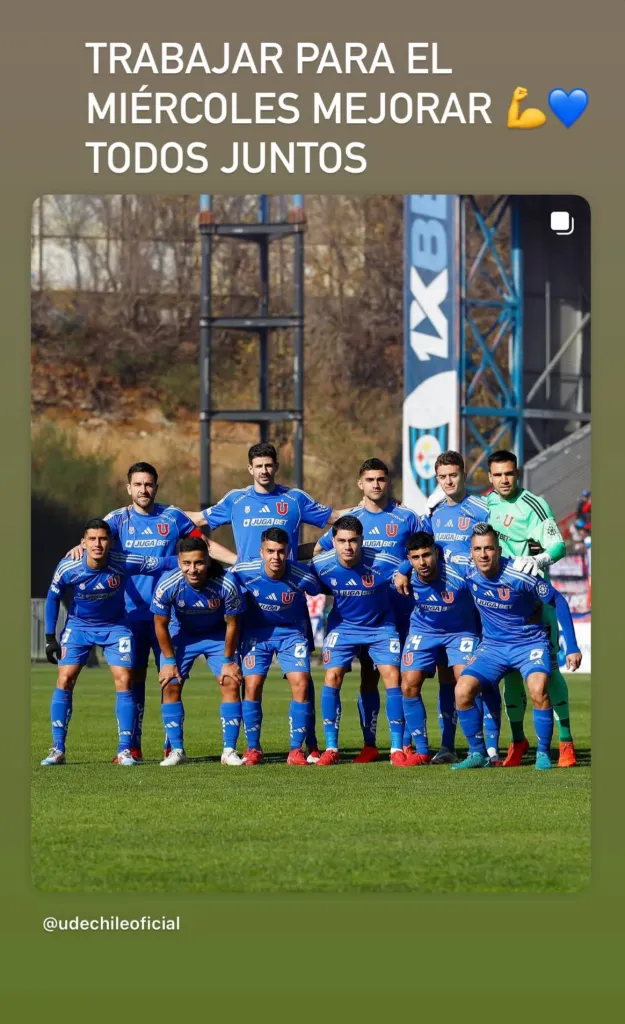 “Trabajar para el miércoles mejorar todos juntos”, escribió en sus redes sociales, en una fotografía de la formación titular de la U del domingo en Talcahuano, con el motivo de dar una señal de unidad.