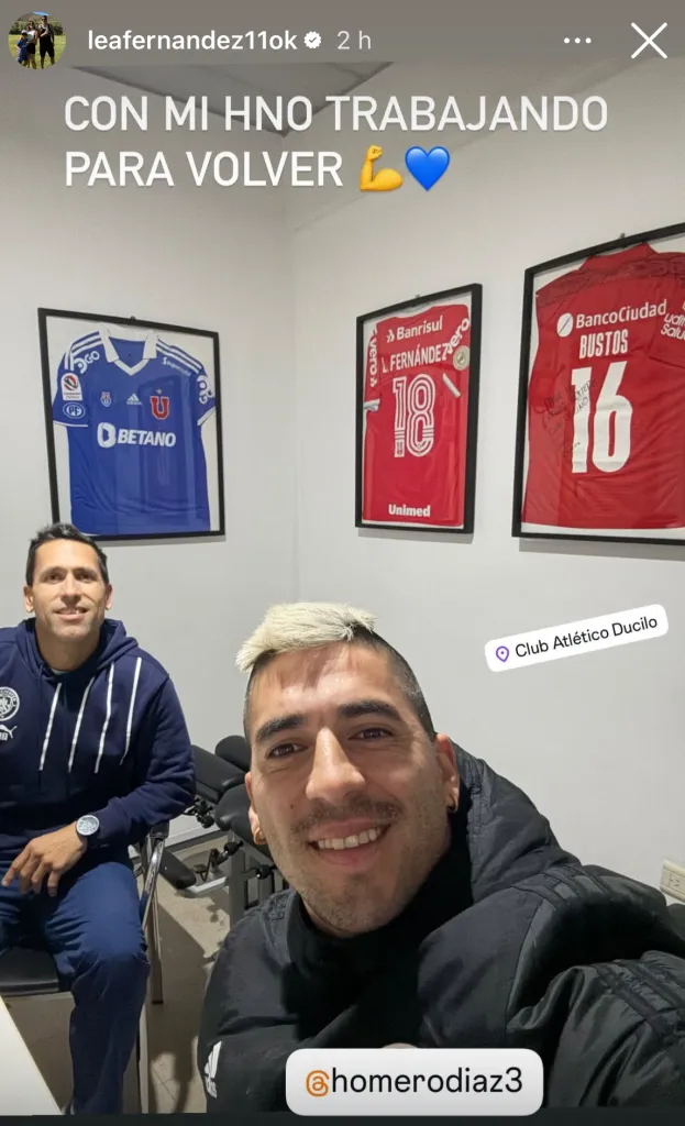 “Con mi hermano trabajando para volver”, escribió el Lea Fernández lo que ilusiona a los hinchas de la U con el regreso para el partido ante Unión Española, donde ya está suspendido Rodrigo Contreras.