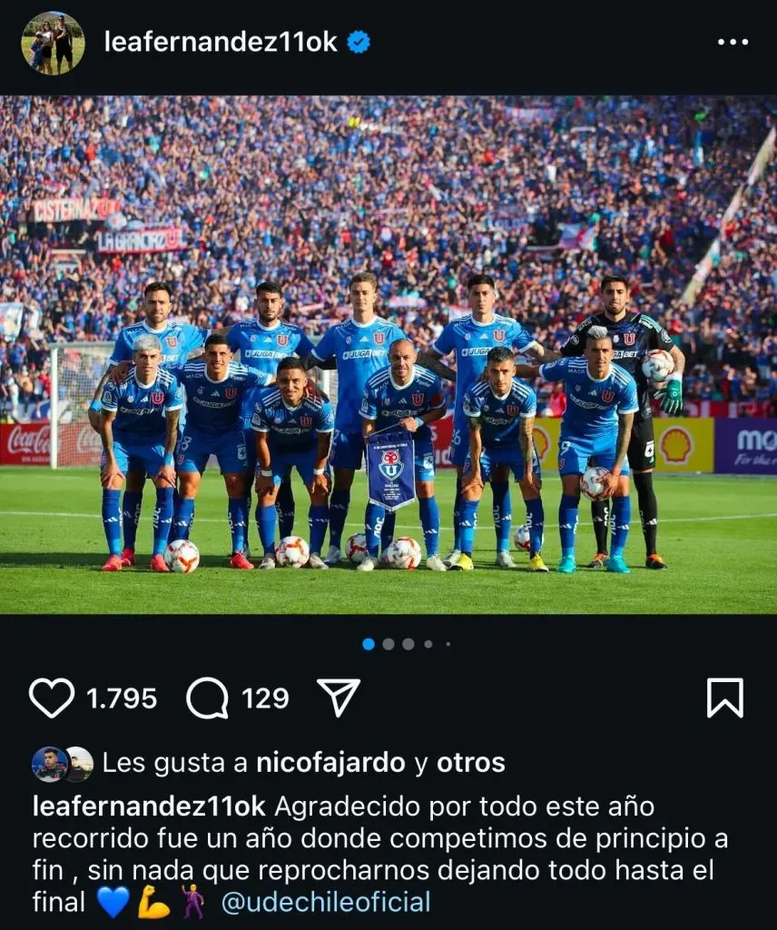 Por lo mismo, también quiso dar un cierre al año deportivo, con un mensaje a los hinchas de la U y sus compañeros, para seguir luchando por un objetivo más grande.