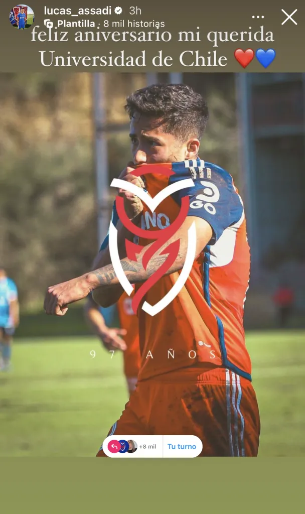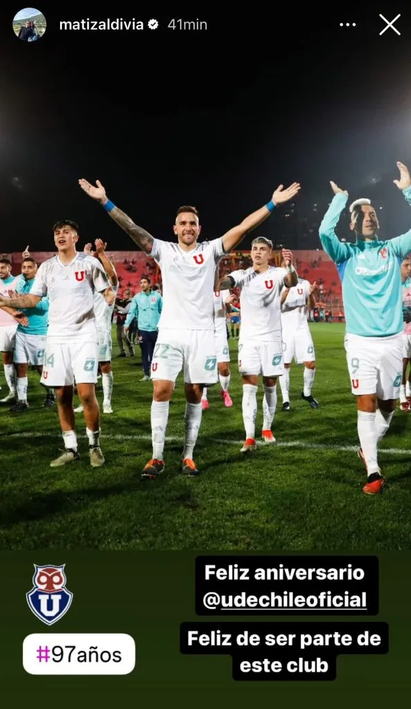 No fue el único del plantel que dedicó una historia de sus redes sociales para poder agradecer o, simplemente celebrar, el momento que vive Universidad de Chile en la actualidad.