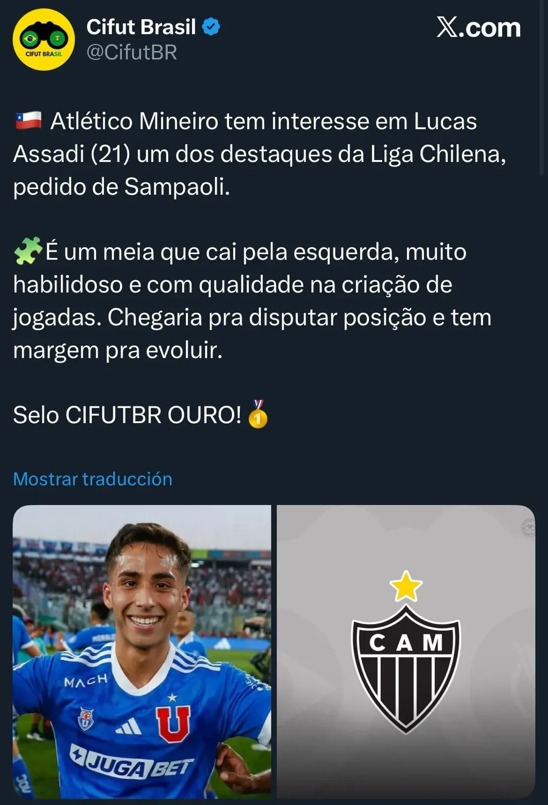 Los fanáticos del Mineiro poco a poco comienzan a conocer a Lucas Assadi, donde se han armado compilados y análisis de su juego, tanto así que lo han catalogado como “el nuevo Alexis Sánchez”.