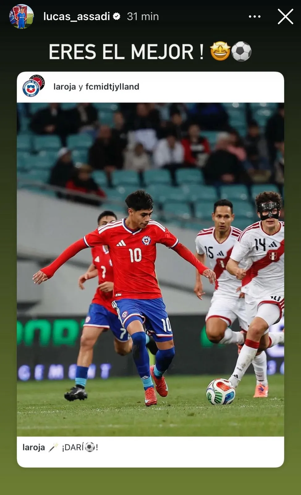 Fue en su Instagram personal de Lucas Assadi el lugar donde quiso dedicar un sentido mensaje a Darío Osorio, luego de ser la gran figura en el triunfo de la selección chilena.