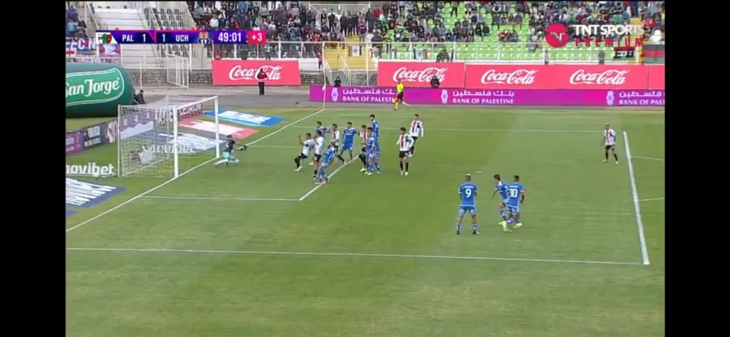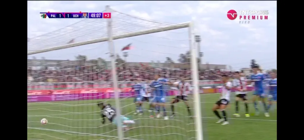 Un centro de Bryan Carrasco no fue conectado por ninguna cabeza árabe. No obstante, el meta azul se estiró de forma defectuosa, con las manos débiles y el balón le pasó justo entre medio de ellas.
