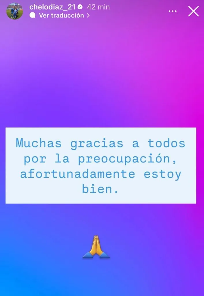 “Muchas gracias a todos por su preocupación, afortunadamente estoy bien“, escribió en las historias de su Instagram.