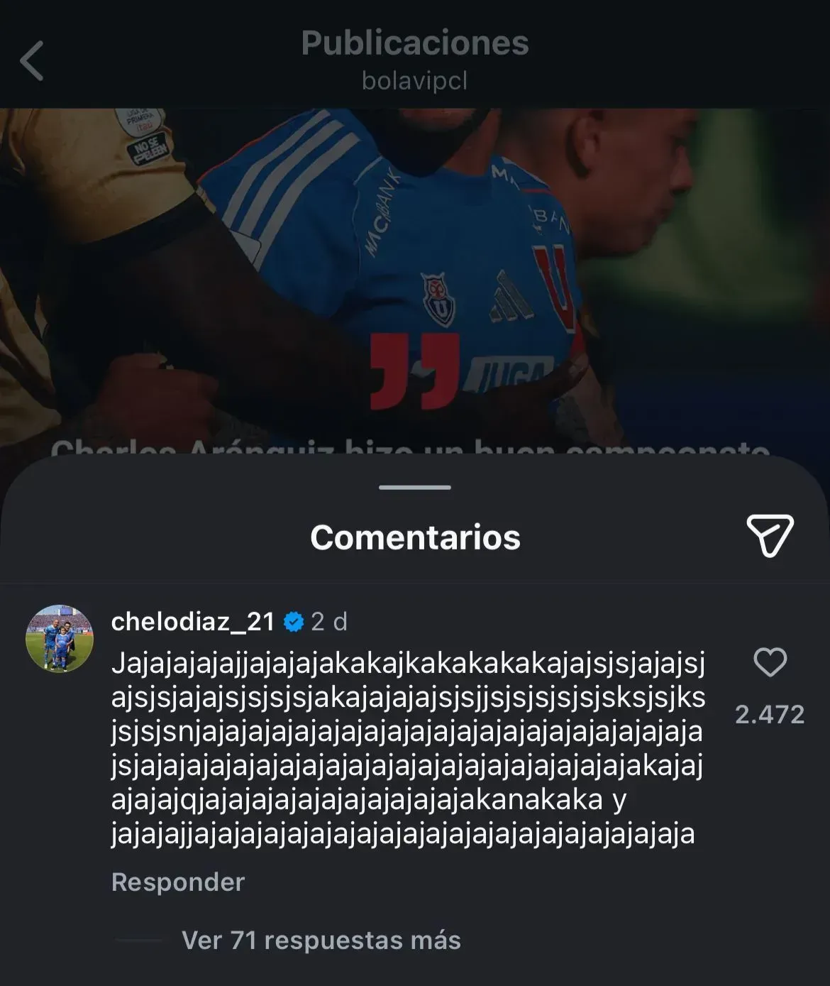 La respuesta del Chelo Díaz fue en un posteo de Bolavip Chile, por lo que no tuvo problemas en escribir una llamativa respuesta que no pasó desapercibida para los hinchas.