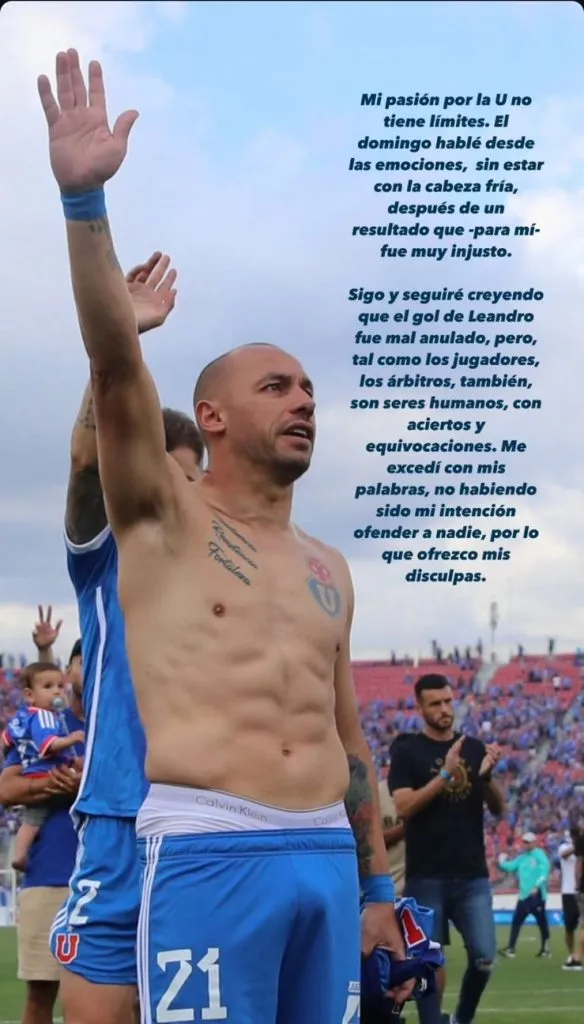 “Mi pasión por la U no tiene límites. El domingo hablé desde las emociones sin estar con la cabeza fría, después de un resultado que -para mí- fue muy injusto”, comenzó su explicación.