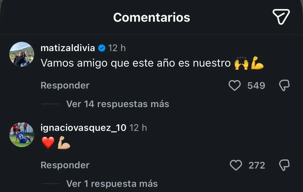 Por lo mismo, uno de sus grandes amigos dentro del plantel, Matías Zaldivia no demoró en responder su mensaje en redes sociales: “Vamos amigo que este año es nuestro”.