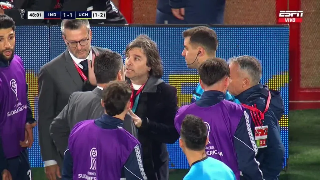 Ya en el segundo tiempo, desde el camarín Cristopher Toselli tuvo que reemplazar a Castellón por molestias físicas… y en los 47′ se paró el partido.