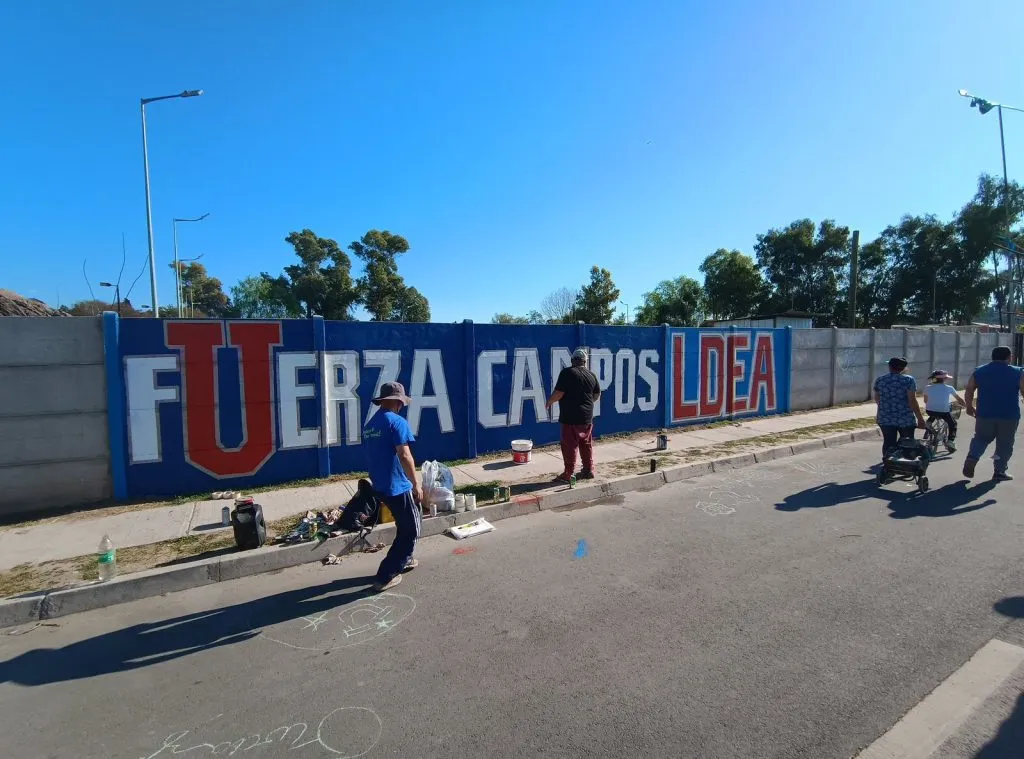 Para ellos fue dedicado el muro que la hinchada azul hizo en favor de Cristóbal Campos, justo al frente de la casa de los padres del arquero. “Fuerza Campos, LDEA”, dice el mural pintado justo al frente del hogar.