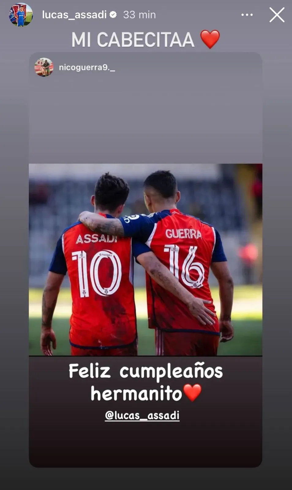 El delantero aprovechó sus plataformas digitales para mandar un saludo al cumpleañero Lucas Assadi, uno de sus amigos dentro del plantel, por lo que no dudó en saludarlo.
