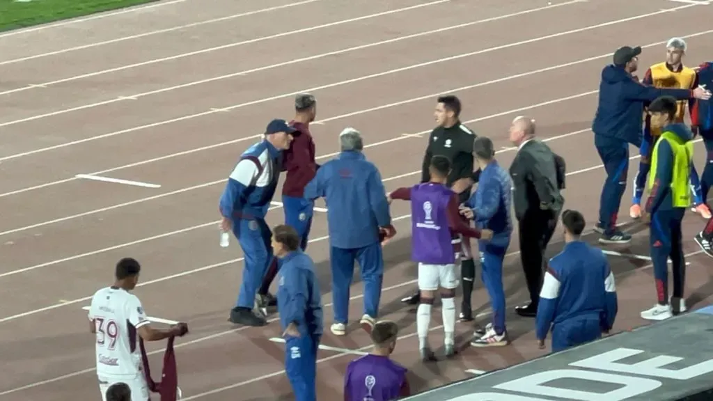 Jugadores de la U y Lanús discutieron. Foto: Cristián Fajardo