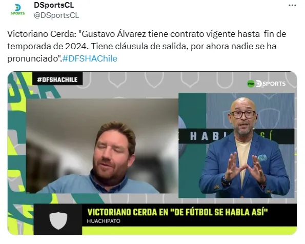 “Gustavo Álvarez tiene un contrato vigente hasta fin de temporada de 2024, que no se sabe si es noviembre o diciembre, pero es al final de la temporada. Tiene cláusula de salida, en caso de que alguien la ejerza la vamos a respetar, por ahora nadie se ha pronunciado, por lo tanto, sigue siendo el técnico del club”, manifestó Cerda.