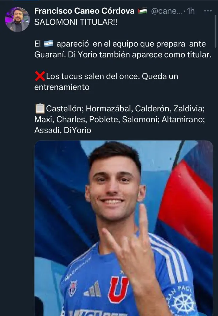 De hecho, un nombre sorprende. Según indicó Francisco Caneo, el profe quiere poner de titular a Felipe Salomoni ante el Aborigen. Además, los dos “Tucus” salen de la oncena titular.