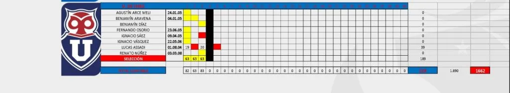 La U acumula 228 minutos en el reglamento de los jugadores de inferiores, donde sólo 39 de ellos han sido aumentados por la participación del apuntado volante.