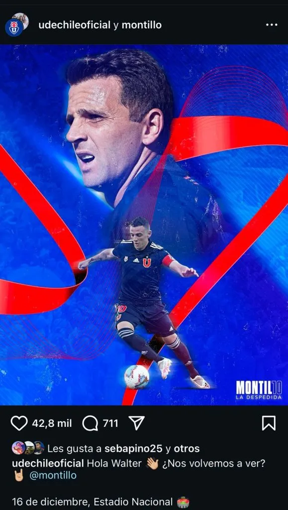 Pero se dio vuelta la página, porque fue Universidad de Chile la que hizo el anuncio: “Hola, Walter. ¿Nos volvemos a ver? 16 de diciembre, Estadio Nacional”.