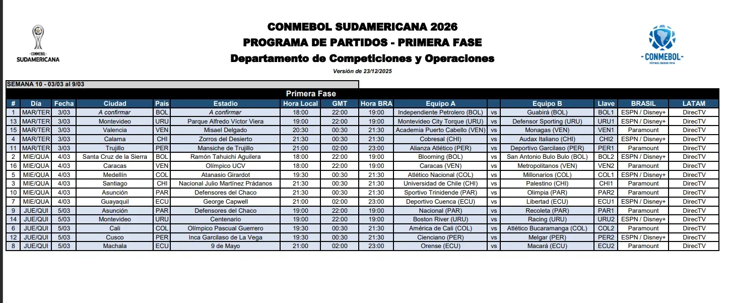 Universidad de Chile será parte de la Copa Sudamericana 2026, torneo que esta jornada definió su fixture confirmado para las primeras fases de la competencia internacional.