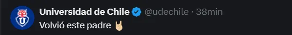 “Volvió este padre”, escribió la cuenta oficial de Universidad de Chile en torno a la buena nueva del ’22’. Durante la ausencia de Zaldivia, hubo uno de los refuerzos que fue titular: Nicolás Ramírez, quien se integró como agente libre desde el Barcelona de Ecuador.