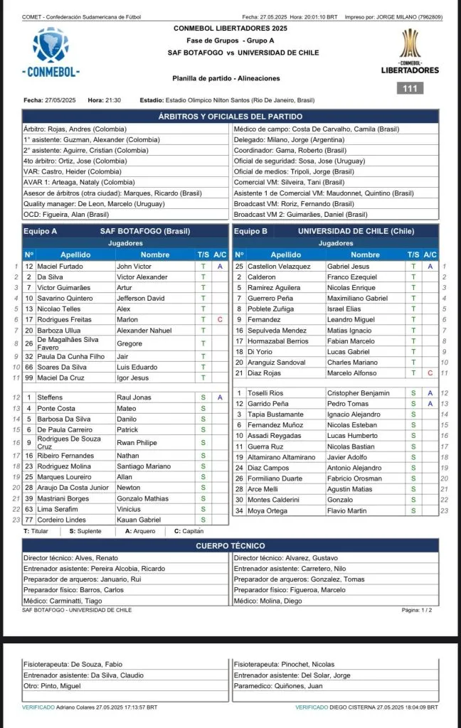 Universidad de Chile se juega todo por la gran hazaña en Brasil, donde disputará el paso a los octavos de final de la Copa Libertadores 2025, enfrentando al actual campeón Botafogo.
