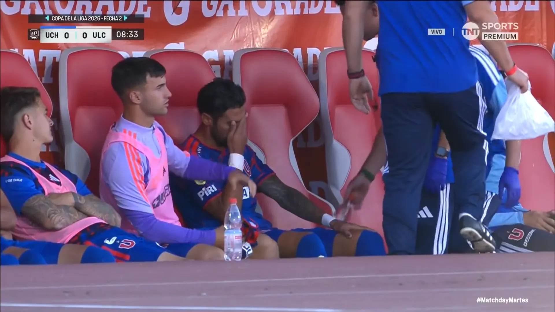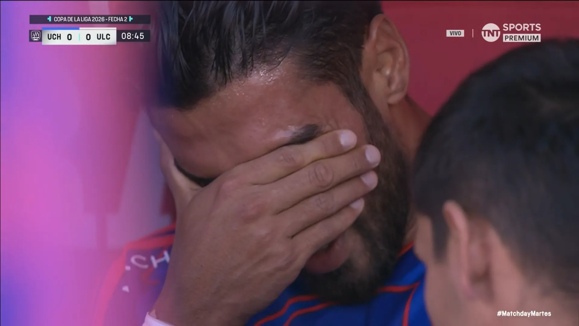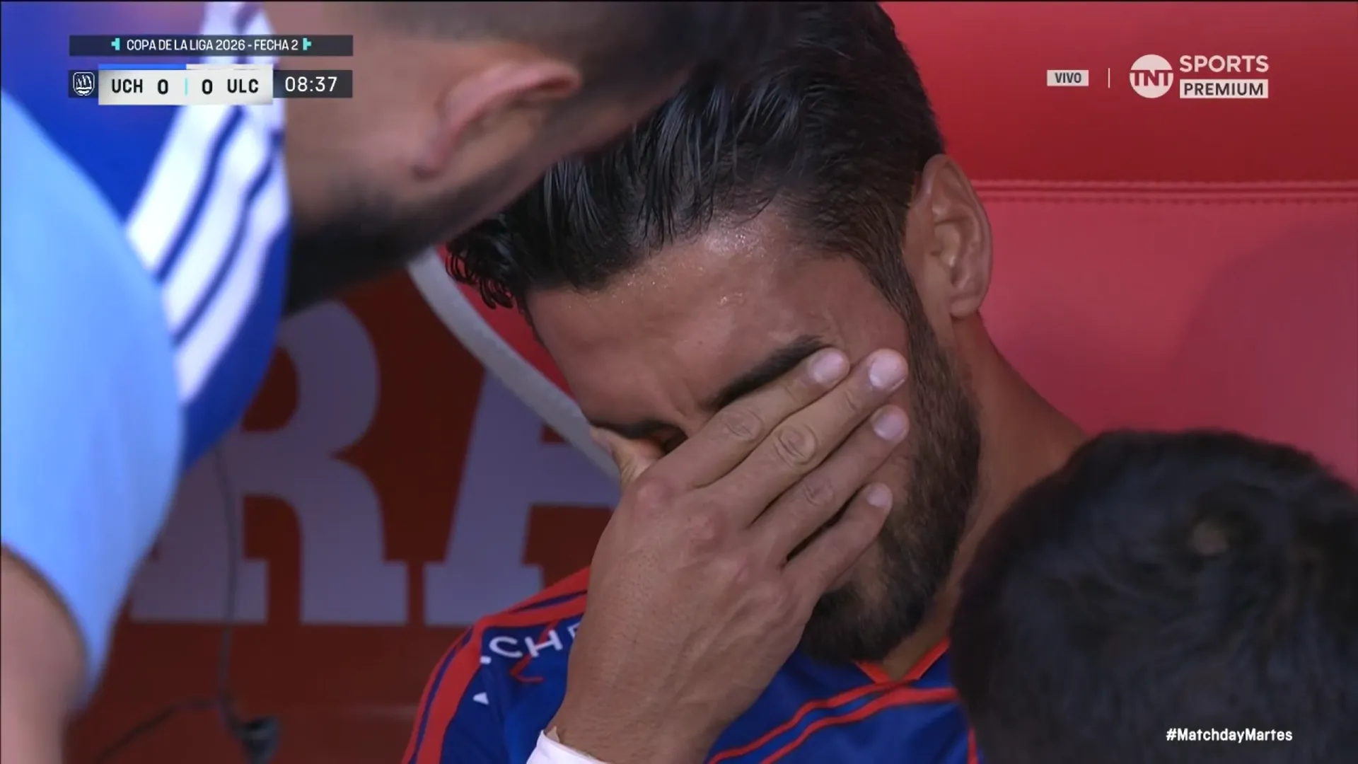 Cuando se jugaban los 8′ la mala fortuna golpeó a la U. Juan Martín Lucero, quien salió hace poco de una lesión, debió dejar la cancha por un problema muscular. El delantero abandonó la cancha entre lágrimas.