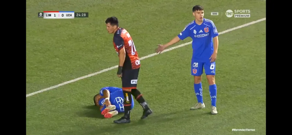 Con un Nicolás Guerra inquietando en cada ataque de la U, el azul quedó en el piso tras ser bajado por Alfonso Parot. En la transmisión de TNT Sports no vieron la acción en el vivo, pero tras la repetición dejaron en claro que la jugada era penal.