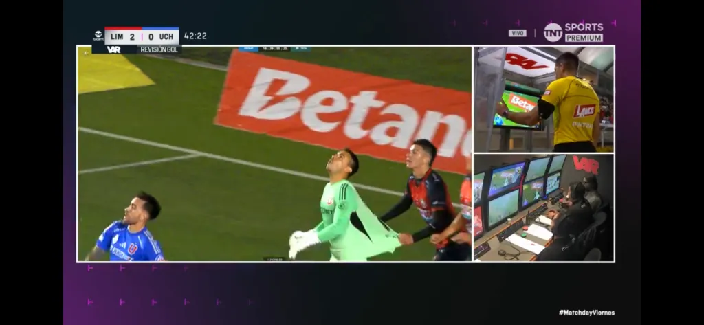 Y no fue la única polémica, ya que en el minuto 40, Limache anotaba el 2-0 en un error de Cristopher Toselli en la salida. Pero con posterior llamado del VAR se pudo apreciar que al meta azul lo tomaron de la camiseta.