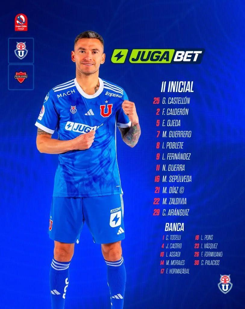 Para el mediocampo, el estratega azul dispuso que el polifuncional Matías Sepúlveda juegue abierto por la derecha en lugar de Hormazábal, y puso a Maxi Guerrero para acompañar en delantera a Nicolás Guerra y Leandro Fernández.