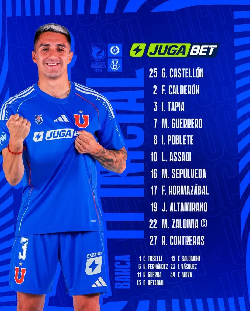 Mientras que después de mucho rato, la U volverá a jugar con tres hombres en ataque, con Maximiliano Guerrero y Lucas Assadi por los costados de un Javier Altamirano que será enganche, para dejar al argentino Rodrigo Contreras como punta.