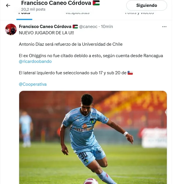 Así lo confirma el periodista Ricardo Obando de Deportes en Cooperativa, quien desde Rancagua confirma el movimiento de Universidad de Chile para sumar su primer refuerzo.