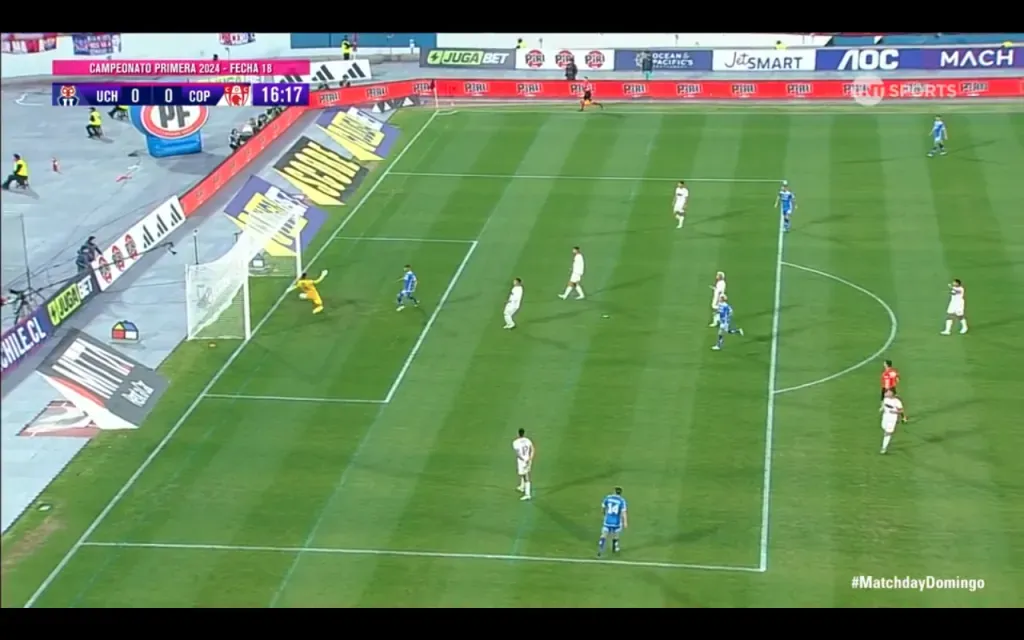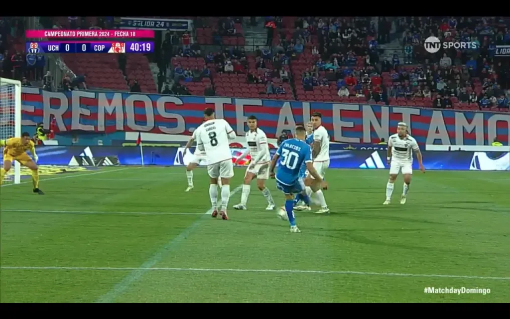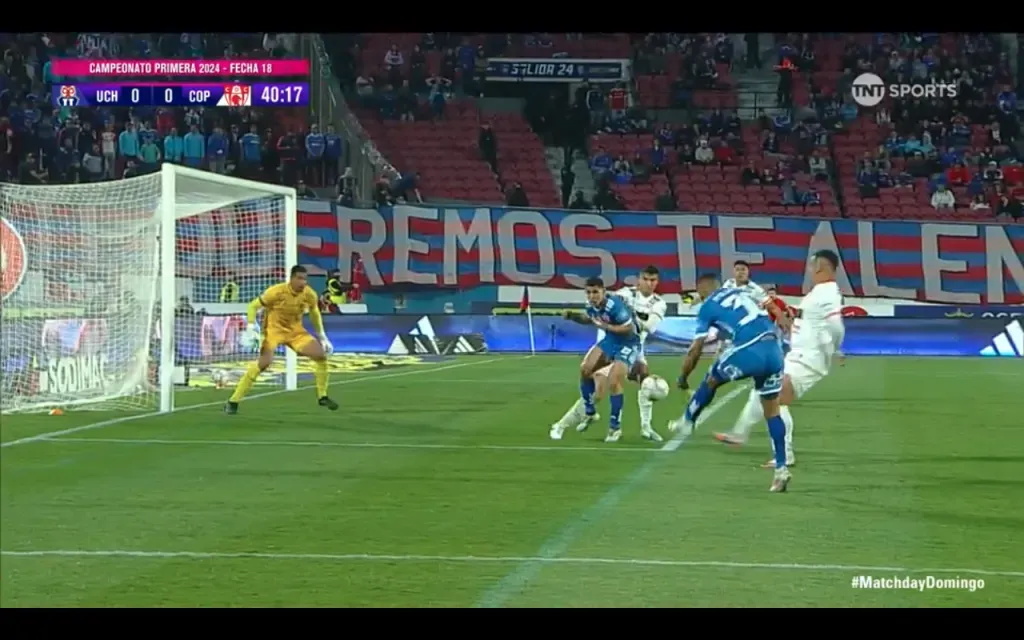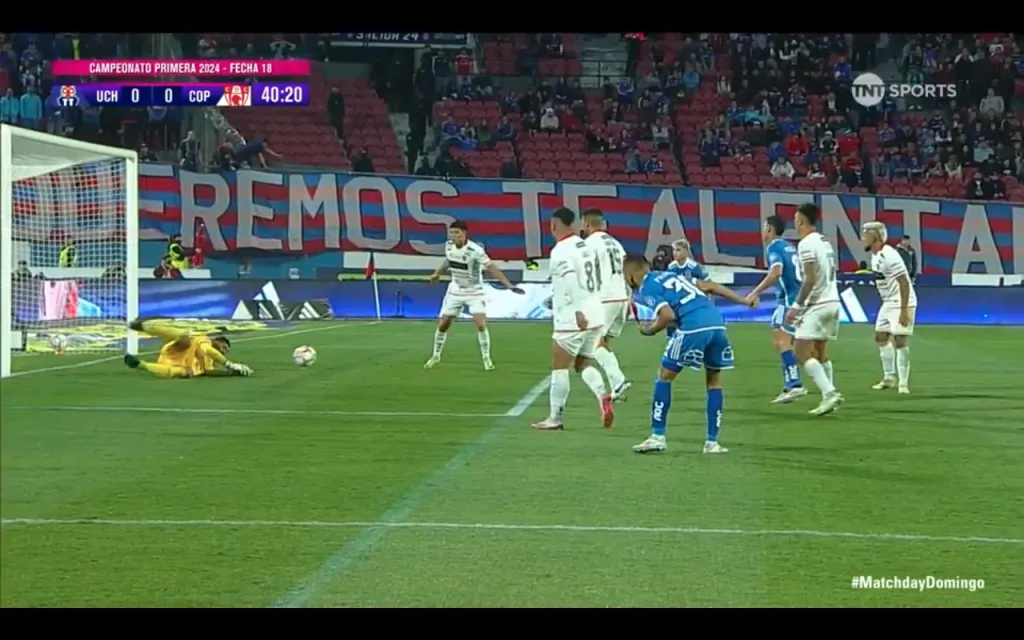 Luego, la U fue total dominador del encuentro. No solamente era intensa la presión sobre Deportes Copiapó, que resistía con un Leyton muy inspirado en portería. Sino que, además, el factor suerte estaba jugando muy a favor de la visita.