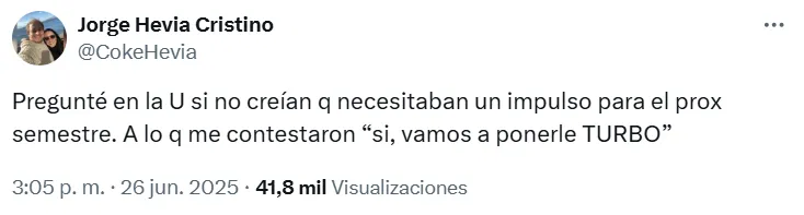 “Pregunté en la U si no creían que necesitaban un impulso para el próximo semestre. A lo que me contestaron ‘sí, vamos a ponerle Turbo’“, dijo Coke Hevia.