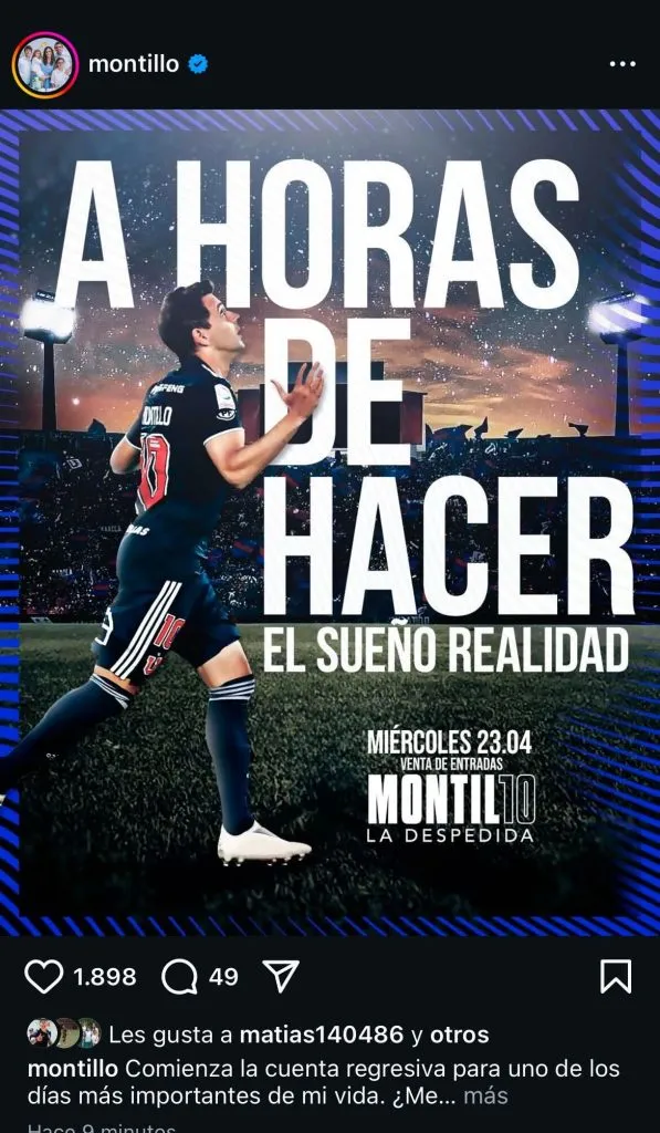 Fue en las redes sociales oficiales de Walter Montillo, donde el ex jugador publicó un nuevo afiche de su despedida del fútbol, la que será con la camiseta de Universidad de Chile.