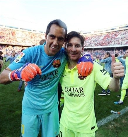 Bravo y Messi ganaron juntos en el Barcelona La Liga y Copa del Rey 2014-15 y 2015-16, la Supercopa de España 2016 y la Champions League 2014-15, más allá que la UEFA no lo considerara por ser suplente de Marc-André ter Stegen en todos los duelos.