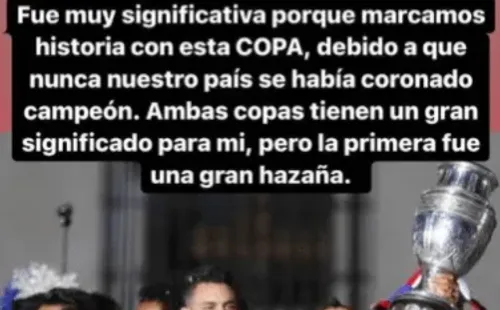 El King contó que el título de Copa América con la Roja más importante fue el primero. “Fue muy significativa porque marcamos historia con esta copa, debido a que nunca nuestro país se había coronado campeón. Ambas copas tienen un gran significado para mí, pero la primera fue una gran hazaña“.