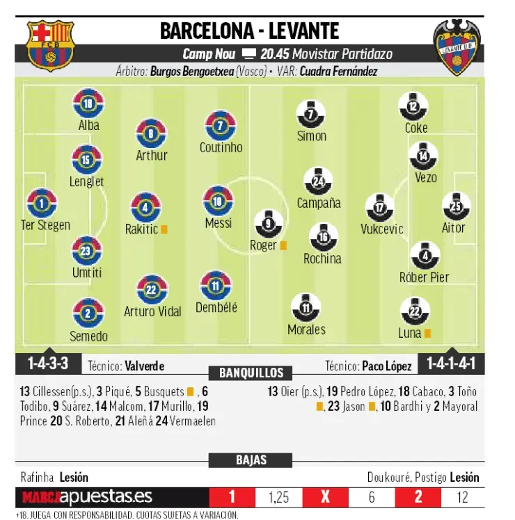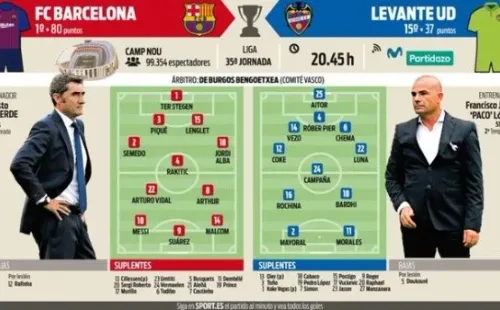 Los diarios Marca y Sport llevan al chileno entre los once inicialistas que parará Ernesto Valverde esta tarde para, empate mediante, sentenciar la corona de la presente temporada.