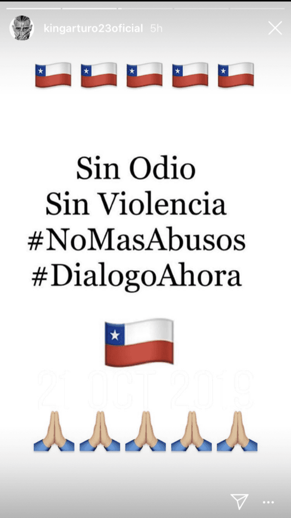 Arturo Vidal nuevamente se refirió a lo que ocurre a lo largo de nuestro país y encaró a las autoridades responsables del excesivo nivel de violencia contra los manifestantes.