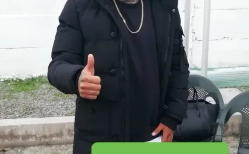 El volante nacional apareció junto a su prometida para alentar a su club que con el empate se mantiene en la punta de la Tercera División B en el Grupo 2 con 40 unidades.