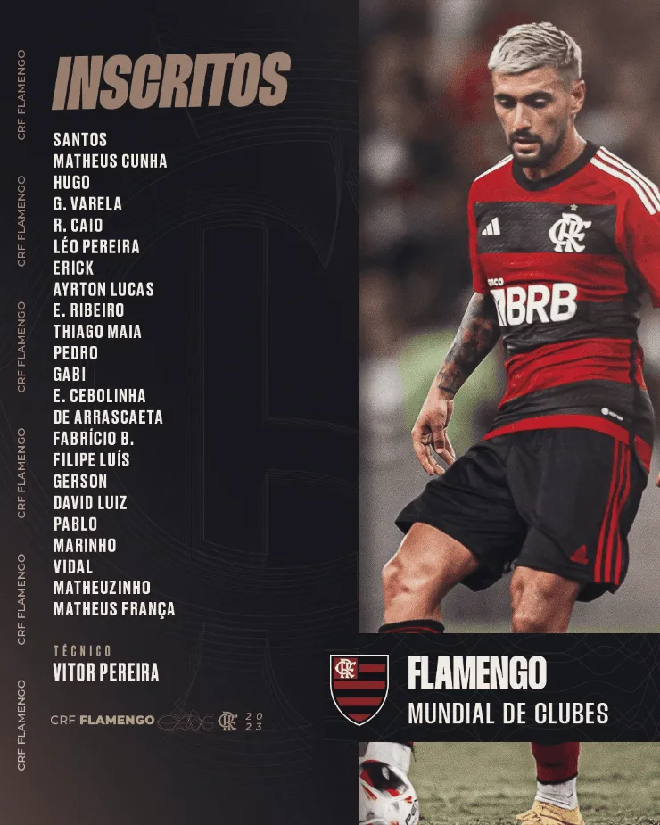 De esta manera, Flamengo inscribió a Hugo Matheus Cunha y Santos como arqueros; Ayrton Lucas, Filipe Luis, Varela y Matheuzinho como laterales; David Luiz, Fabrício Bruno, Léo Pereira, Pablo y Rodrigo Caio de zagueros centrales; los mediocampistas Erick Pulgar, Thiago Maia, Vidal,De Arrascaeta, Everton Ribeiro, Gerson yMatheus França; y los delanteros Everton Cebolinha, Gabigol, Marinho e Pedro.