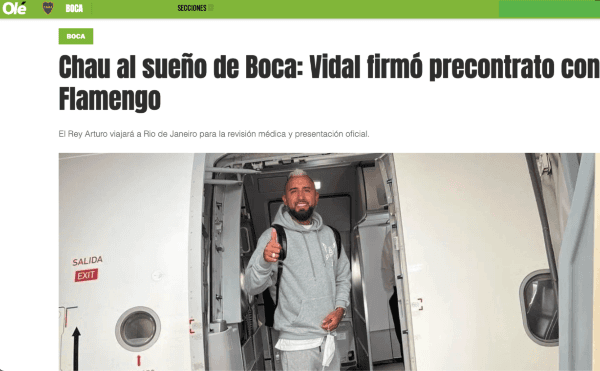 Luego de que se conociera que Arturo Vidal firmó un precontrato con el Flamengo, en Argentina lamentaron el frustrado arribo a Boca Juniors. Los principales medios deportivos aseguraron que el King puso fin al “sueño de Boca” y el propio Juan Román Riquelme.